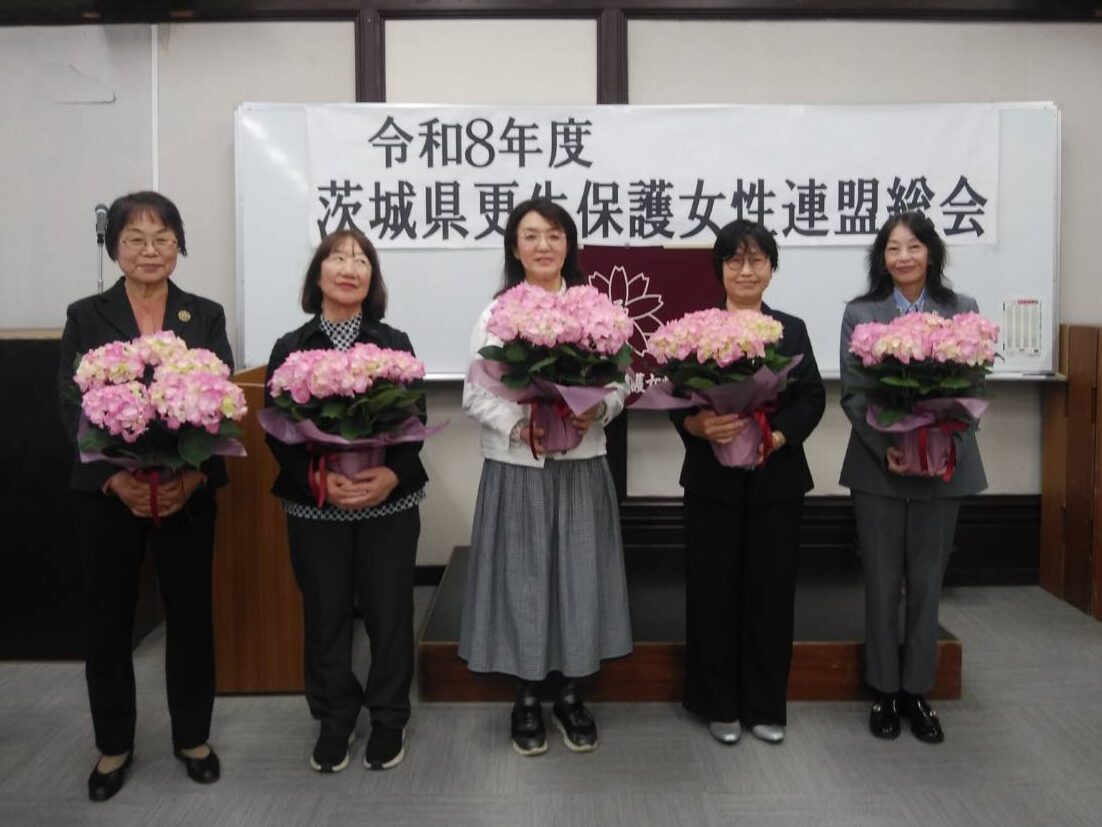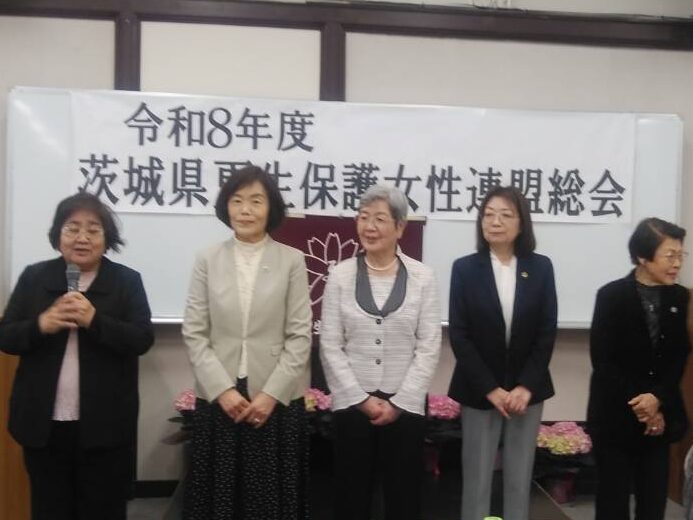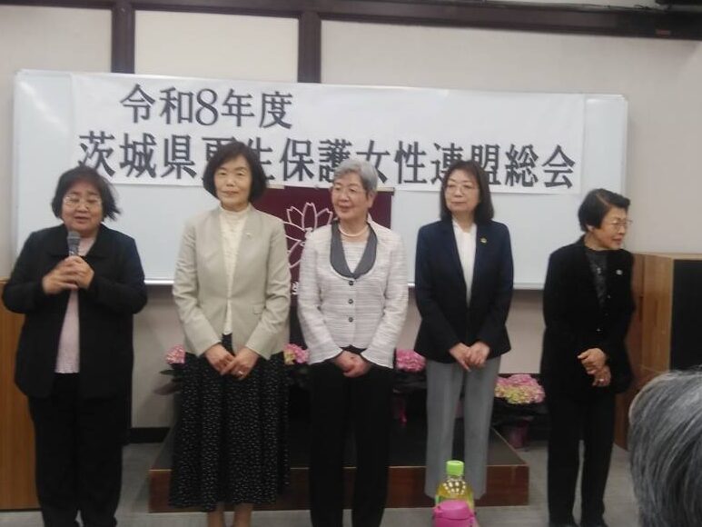 令和8年4月15日水曜日、茨城県水戸生涯学習センターにおいて、令和8年度総会及び地区会長連絡会議が開催されました。県連盟の鈴木みち子会長、水戸保護観察所宮澤由紀所長、県保護司会連合会小磯実会長のあいさつがあり、令和7年度の事業報告、決算報告、監査報告、令和8年度事業計画、予算がそれぞれ承認されました。また、役員、新地区会長の紹介がありました。